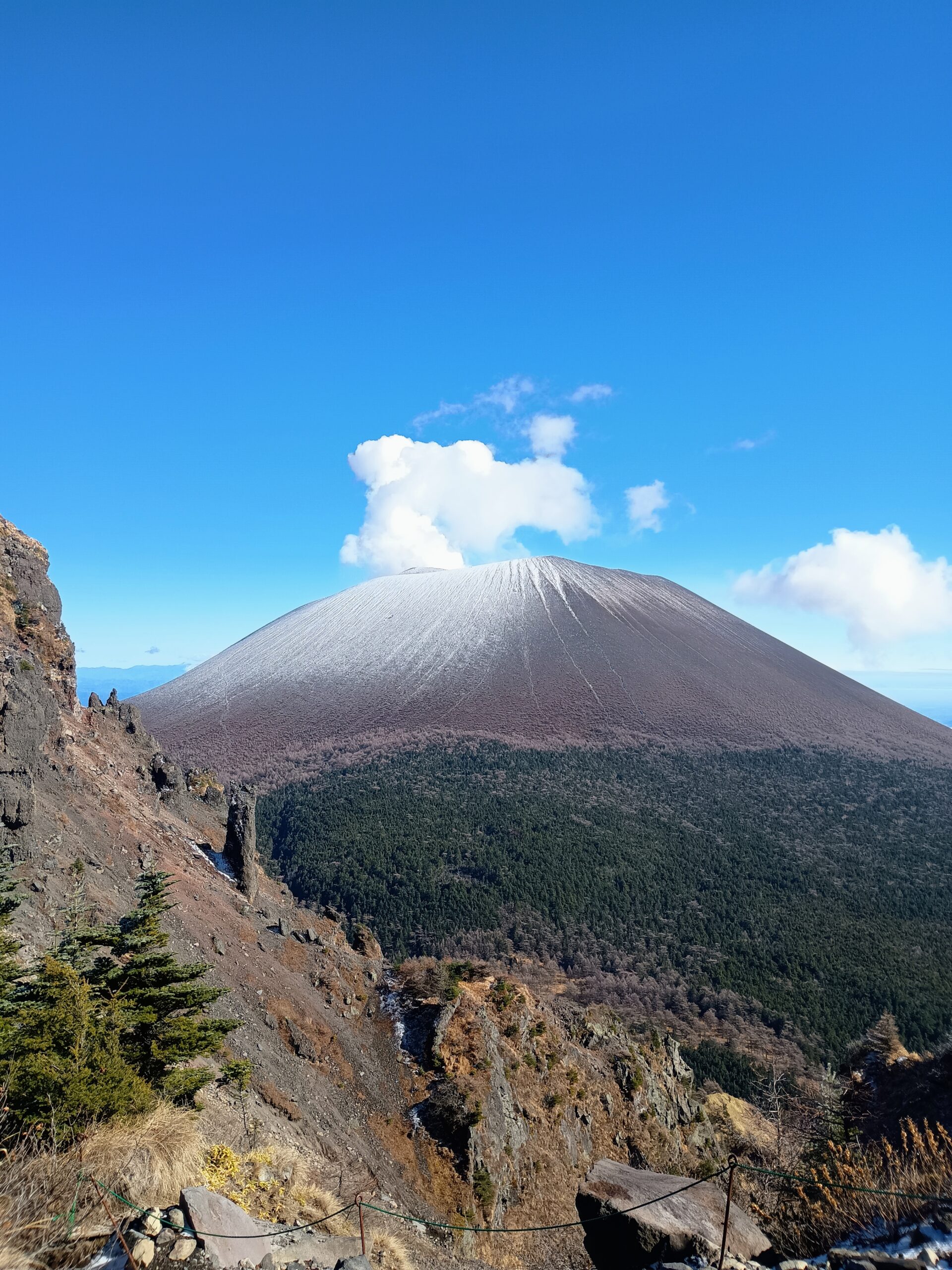| 浅間山 | 浅間山(あさまやま)は群馬県と長野県の県境に位置する雄大な山で、標高は約2,568メートルです。 活火山として知られており、現在も時折噴火があるため、登山には注意が必要です。 周囲の自然が豊かで、冬には黒い山肌に雪が粉砂糖のようにかかり、その姿は登山者の間で「ガトーショコラ」と呼ばれ親しまれています。 周辺には、浅間山の火山活動によるダイナミックな景観が楽しめます🍂 |