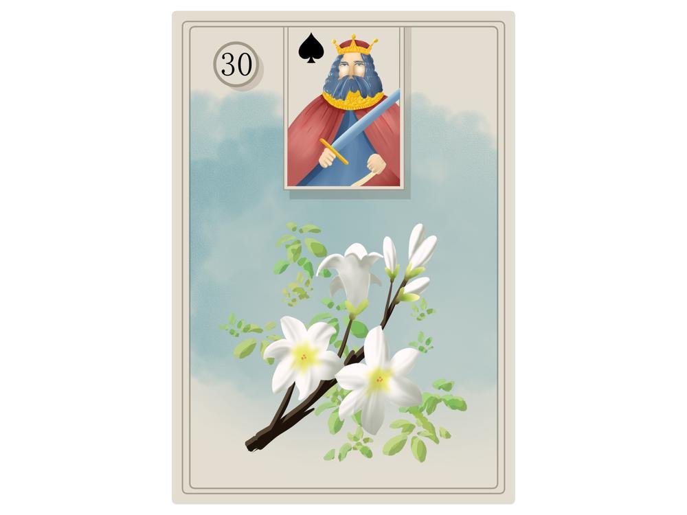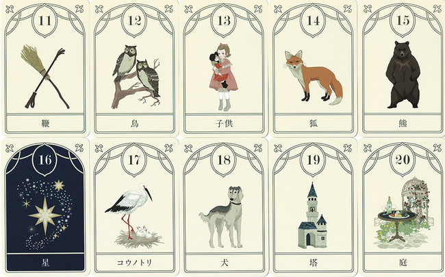 18世紀後半のフランスで活躍した占い師マリー・アン・アデレード・ルノルマンにちなんで名付けられた占い用カードです。特徴として、36枚のカードで構成され、それぞれに「騎士」「星」「家」などのシンプルなモチーフが描かれています。