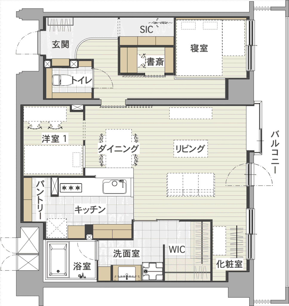 +S(サービスルーム)の使い方は自由自在。 在宅ワークの書斎、趣味のスペース、 大容量の収納部屋としても活用できます。 暮らしに合わせて柔軟に使える“+αの空間”です。